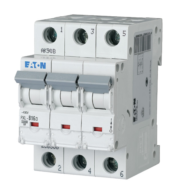 Leitungsschutzschalter PXL, 3-polig, Auslösecharakteristik: B, Bemessungsstrom In: 16 A, Bemessungsschaltvermögen nach IEC/EN 60898-1: 10 kA, Schaltgeräte für Wohn- und Zweckbau