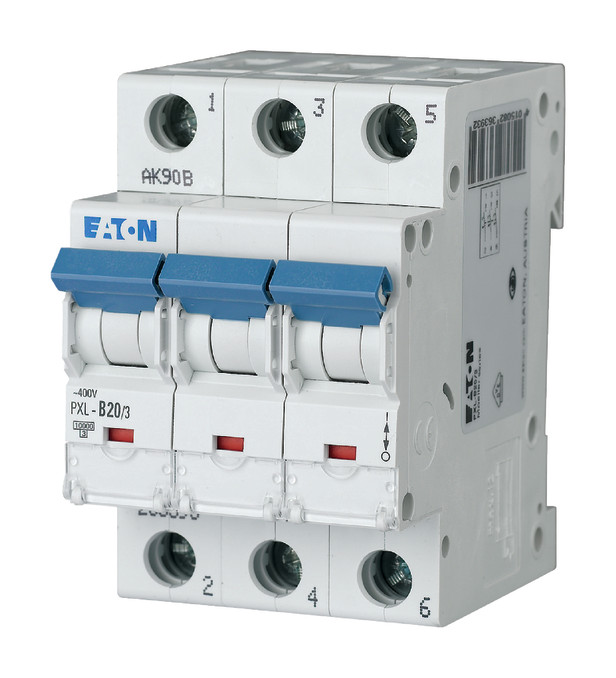 Leitungsschutzschalter PXL, 3-polig, Auslösecharakteristik: B, Bemessungsstrom In: 20 A, Bemessungsschaltvermögen nach IEC/EN 60898-1: 10 kA, Schaltgeräte für Wohn- und Zweckbau| Hersteller / Marke | EATON |