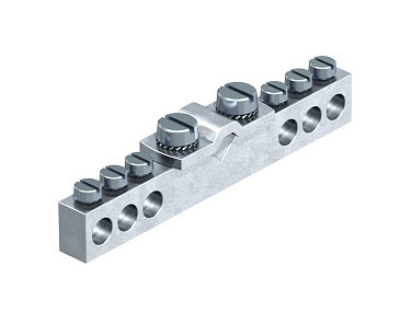 Potentialausgleichsschiene Anschlussmöglichkeiten: - 6 x Leitungen 1,5-10 mm² - 1 x Leitung 6-16 mm² - Ungeschnitten - Kontaktleiste aus Messing, vernickelt - Schrauben und Klemmbügel aus Stahl, galvanisch verzinkt Gewicht: 3 kg/100 St. Typ: 1804 Art.-Nr.: 5015553 Potentialausgleichsschiene Anschlussmöglichkeiten: - 6 x Leitungen 1,5-10 mm² - 1 x Leitung 6-16 mm² - Ungeschnitten - Kontaktleiste aus Messing, vernickelt - Schrauben und Klemmbügel aus Stahl, galvanisch verzinkt Gewicht: 3 kg/100 St. Typ: 1804 Art.-Nr.: 5015553