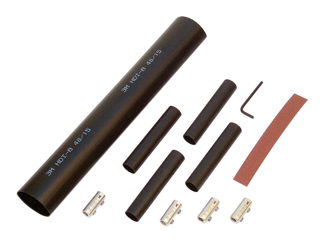 Die 3M Warmschrumpfverbindungsgarnitur der Serie 91-AHMC mit Warmschrumpfpressverbindern ermöglicht eine einfache, schnelle und sicherer Kabelverbindung und ist für alle gängigen Kunststoffkabel mit PVC- oder VPE-Isolation in der Niederspannung geeignet. Dabei können Sie sie sowohl im Innen- als auch im Außenbereich und zur Erdverlegung einsetzen. Aufgrund ihrer hohen Schrumpfrate deckt sie einen großen Querschnittsbereich ab, weshalb nur wenige Größen für eine Vielzahl von Verbindungen nötig sind. Die Verbindungsgarnitur ist äußerst alterungs- und chemikalienbeständig und verfügt über eine sehr gute mechanische Festigkeit. Eine Garnitur enthält einen dickwandigen Außenschlauch und Pressverbinder mit Warmschrumpfisolierung.