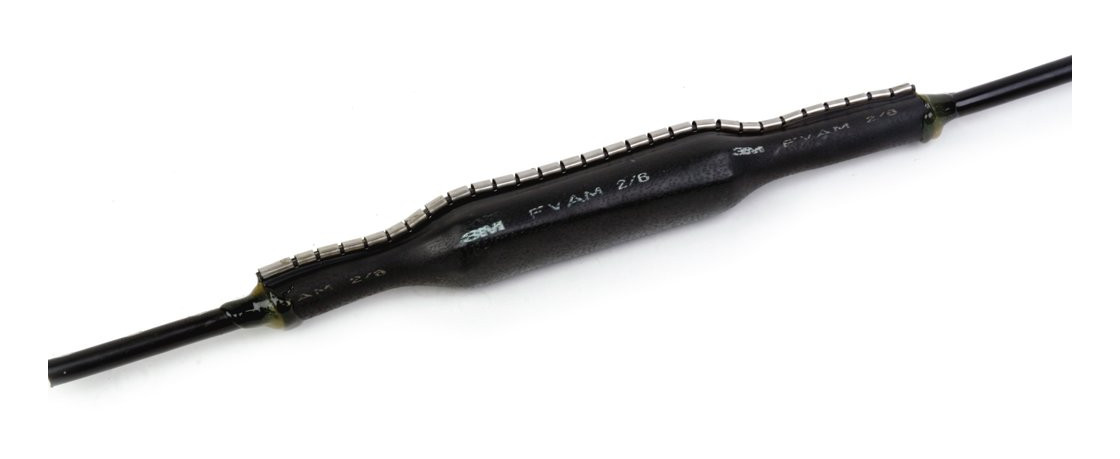 Die 3M Warmschrumpf-Fernmeldeverbindungs- und Abzweiggarnitur FVAM eignet sich für alle gefüllten und ungefüllten Fernmelde- und Signalkabel ohne Druckluftüberwachung. Die Garnitur entspricht den Technischen Lieferbedingungen der Deutschen Telekom AG. Die mitgelieferte Schutzeinlage dient als Wasserdampfsperre sowie zum Schutz des Kabelspleißes vor zu großer Wärmeeinwirkung und zum mechanischen Schutz. Dabei zeigt eine außen auf der Manschette befindliche Beschichtung mit Temperaturindikatorfarbe die Beendigung des Schrumpfvorganges durch einen Farbumschlag an. Eine nichtrostende Verschlussschiene verhindert ein Öffnen bzw. Verziehen der Manschette beim Schrumpfen. Der Lieferumfang der Verbindungs- und Abzweiggarnitur beinhaltet eine wärmeschrumpfende Manschette mit Temperaturindikatorfarbe, Verschlussschiene, Schutzeinlage, Schirmverbinder- und Verbindungsleitung, Kabelreinigungstuch, Schmirgelleinen und die Montageanleitung. Ein Abzweigsystem ist im Lieferumfang nicht enthalten.| Hersteller / Marke | 3M |