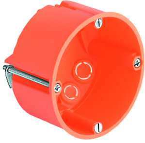 Hohlwanddosen, VDE für Holz, Gipskarton und andere Plattenwände für Plattenstärke 7-40 mm   Hohlwand Gerätedose, Tiefe: 47mm, Fräsloch Ø: 68mm, für Plattenstärke: 7 - 40mm, Geräteschrauben: 2, Ausbrechöffnungen Ø 20 mm: 2, Leitungseinführungen 3 x 1,5 mm²: 2, Leitungseinführungen 3 x 2,5 mm² bzw. 5 x 1,5 mm²: 2, Leitungseinführungen für Kleinspannungen: 2, Verbindungsstutzen pro VPE: 7