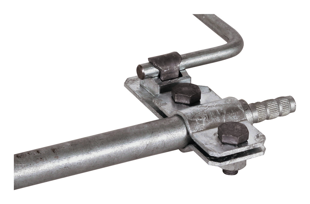 Anschlussschelle nach DIN EN 62561-1, zum Anschluss von Rundleitern am Tiefenerder. Ausführung einseitig mit KS-Verbinder (Rd 7-10 mm).