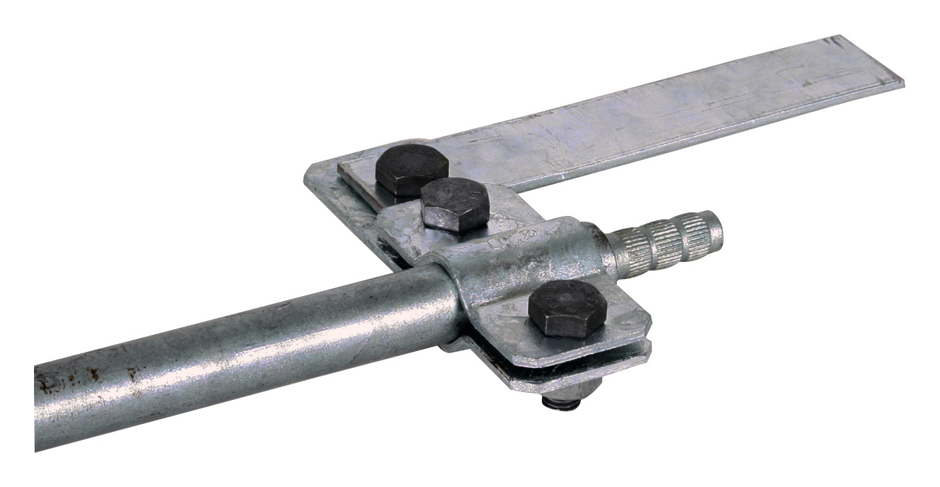Anschlussschelle nach DIN EN 62561-1, zum Anschluss von Flachleitern am Tiefenerder. Ausführung einseitig mit Schraube M10.