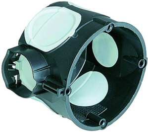 luftdichte Ausführung mit Dichtmembranen vermeidet Leckagen in Außenwänden aus Hohlkammer- und Hohlblocksteinen bzw. Gitterziegeln, werkzeuglose Leitungs- und Rohreinführungen ( 2 x bis M25 im Stutzenbereich, 2 x M 25 und 2 x M 20 am Dosenumfang), verdrehungssicher, garantierter Norm-Kombinationsabstand von 71 mm durch Snap-Rast-Kupplung mit zusätzlicher Verrastung
