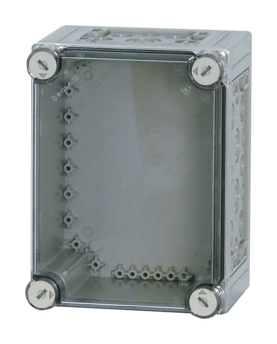 Einzel-Leergehäuse, Material Polycarbonat, schlagfest, Schutzart IP65, patentierter Deckelverschluss mit integriertem Überdruckausgleich, mit metrischen Vorprägungen in allen Seitenwänden, Leitungseinführungen oben und unten jeweils=1xM32/20 und 6xM20 und 2xM16, seitlich jeweils=2xM32/20 und 4xM25/16 und 4xM20 und 4xM16, Befestigungslaschen für Wandbefestigung, plombierbare Deckelverschlüsse, Seitenwände ausschlagbar, als Verteilergehäuse umbaubar durch ausschlagen der Seitenwände, RAL 7035, grau (Unterkasten), durchsichtig rauchgrau, (Deckel), Einbautiefe bei Montageplatte=125mm, Ausführung Deckel: durchsichtig rauchgrau, Ausführung Unterteil: vorgeprägt, Deckel optional nachrüstbar mit Zylinderschloss DVZ...-CI