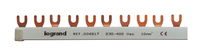 Gabelkammschiene, 3-polig, für 3-polige LS-Schalter oder 3x 1-polige LS-Schalter. Maximale Anzahl der angeschlossenen Geräte: 12, Querschnitt: 10 mm²