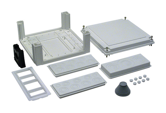 Kabelanschlusskasten,univers,324x307x149mm,IP54,SKII, seitlich leer. Kabelanschlusskasten als Einspeisegehäuse für Zähler und Verteilerschränke IP31/44/54 mit 160 mm oder 205mm Tiefe. Bestehend aus Gehäuse mit Deckel aus Kunststoff, bestückt mit Sammelschienenträger oder leer für optionale Bestückung mit Klemmen oder Montageplatte. Kabeleinführung durch herausnehmbare Flanschplatten an jeder Seite, zum Einlegen des Kabels von vorne. Anbaumöglichkeit seitlich oder unten. Deckel plombierbar. Zur Einspeisung bis 95qmm auf Klemmen oder bis 150qmm auf Sammelschienensystem 40mm-12x5/10mm mit 25kA Kurzschlussfestigkeit oder 60mm-12 bis 30x5/10mm mit max. 55kA Kurzschlussfestigkeit. Schutzart IP54, Schutzklasse II schutzisoliert, Bemessungsspannung 230/400V/50Hz.| Hersteller / Marke | HAGER |