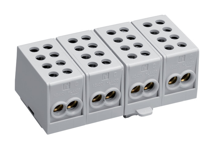 Hauptleitungsabzweigklemme 4polig, 2x35mm²-2x25mm² je Pol, IP20, Farbe: Grau
