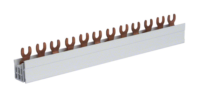 Phasenschiene 3 polig mit Gabelanschluss 10mm² 63A 12 Module. Phasenschiene für passende Modulargeräte.