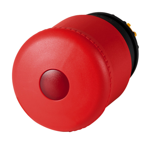 NOT-HALT-/NOT-AUS-Taste, Sortiment: RMQ-Titan, Einzelgerät, Bauform: Pilzform, Durchmesser: 38 mm, Beleuchtung: beleuchtbar mit LED-Element, Zugentriegelung, Beschreibung: überlistungssicher nach ISO 13850/EN 418, Farbe Pilzstößel: rot, Farbe Tastensockel: gelb, RAL 3000, Schutzart: IP66, IP69K, Anbindung an SmartWire-DT: nein, Frontabmessung: 35, Hinweise: Max. Bestückung: 4 x M22-(C)K01, …10 oder 2 x M22-(C)K02, …20, …11, Normen und Bestimmungen: IEC/EN 60947, VDE 0660| Hersteller / Marke | EATON |