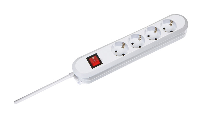 Tischsteckdose SMART 4fach schwarz mit Schalter 16A mit erhöhtem Berührungsschutz, öffenbar, 1,5m H05VV-F 3G1,5mm² Schutzkontaktstecker geschraubt, im Polybeutel mit Header