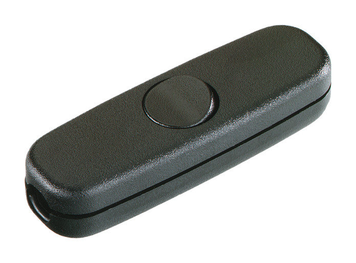 Schnur-Zwischenschalter Serie 5055 3(2)A 250V Ausschalter, 1polig Gehäuse: schwarz / Wippe: schwarz Gehäuseschnappmontage, für doppelt isoliertes Flachkabel 2x0,75mm², mit Verbindungsklemme für Null-Leiter, Zugentlastung durch Isolirstoffschrauben, Schraubkontakte