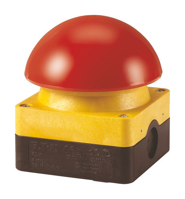 Fuß- und Grobhandtaster, Komplettgerät, Funktion: rastend, Beschreibung: Entsperren durch Ziehen, NOT-HALT-Taster überlistungssicher nach ISO 13850/EN 418, Kontaktbestückung S = Schließer: 1 S, Kontaktbestückung Ö = Öffner: 1 Ö, Kontaktbestückung Hinweis = Sicherheitsfunktion, durch Zwangsöffnung nach IEC/EN 60947-5-1, Farbe Pilzkappe: rot, Farbe Gehäuseoberteil: gelb, Farbe Gehäuseunterteil: schwarz, Anbindung an SmartWire-DT: nein, Normen und Bestimmungen: IEC/EN 60947-5-5, VDE 0660, Schutzart IEC/EN 60529: IP66, IP67, IP69K, Einbaulage: beliebig| Hersteller / Marke | EATON |