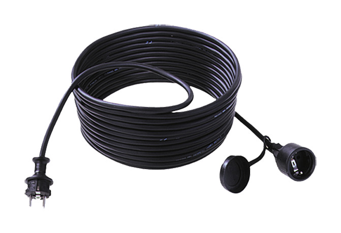 Verlängerung 3pol -Spritzwasserschutz 5 m H07RN-F 3G1,5mm² schwarz Seite1: Schutzkontakt-Zentralstecker Seite2: Schutzkontakt-Kupplung/Deckel