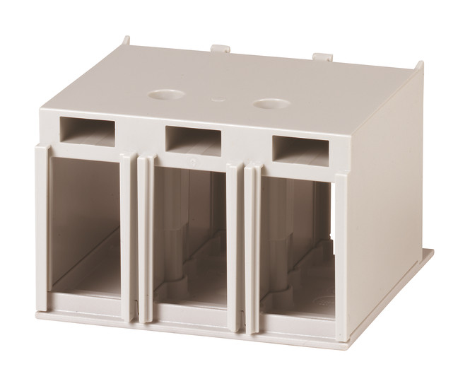 Optionales Zubehör zur Leistungsschalter-Reihe NZM bietet ein umfangreiches Portfolio an Anwendungsmöglichkeiten für den weltweiten Einsatz. Die Montage gestaltet sich flexibel und einfach durch modulare Funktionsgruppen. Hinweise: Typ enthält Teile für eine Schalterseite oben oder unten für 3- bzw. 4-polige Schalter. Berührungsschutz bei Anschluss von Kabelschuhen, Schiene oder Verwendung von Tunnelklemmen. Bei Tunnelklemmen und Schraubanschluss im Satz enthalten. Bei Verwendung von isoliertem Leitermaterial Schutzart IP1X. Verwendbar für: NZM1(-4), PN1(-4), N(S)1(-4)