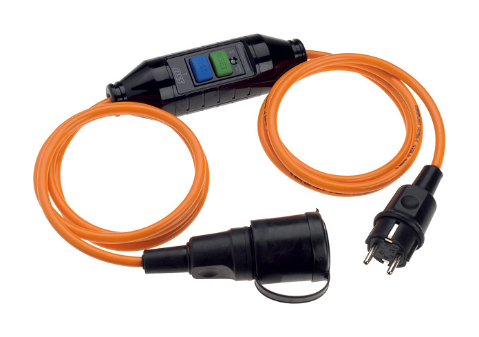Schutzkontaktverlängerung H07BQ-F 3G1,5mm² orange Lg: 3.0m m.eingeb. PRCD 919.189 nach ca. 1,50 m Seite 1: mont. Stecker 913.173 Seite 2: mont. Kuppl. 919.177 einzeln verpackt in Polybeutel| Hersteller / Marke | BACHMANN |