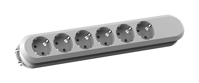 Tischsteckdose SMART 6fach weiß ohne Schalter, öffenbar, mit erhöhtem Berührungsschutz 3m H05VV-F 3G1,5mm² Schutzkontakt-Winkelstecker geschraubt im Polybeutel mit Header
