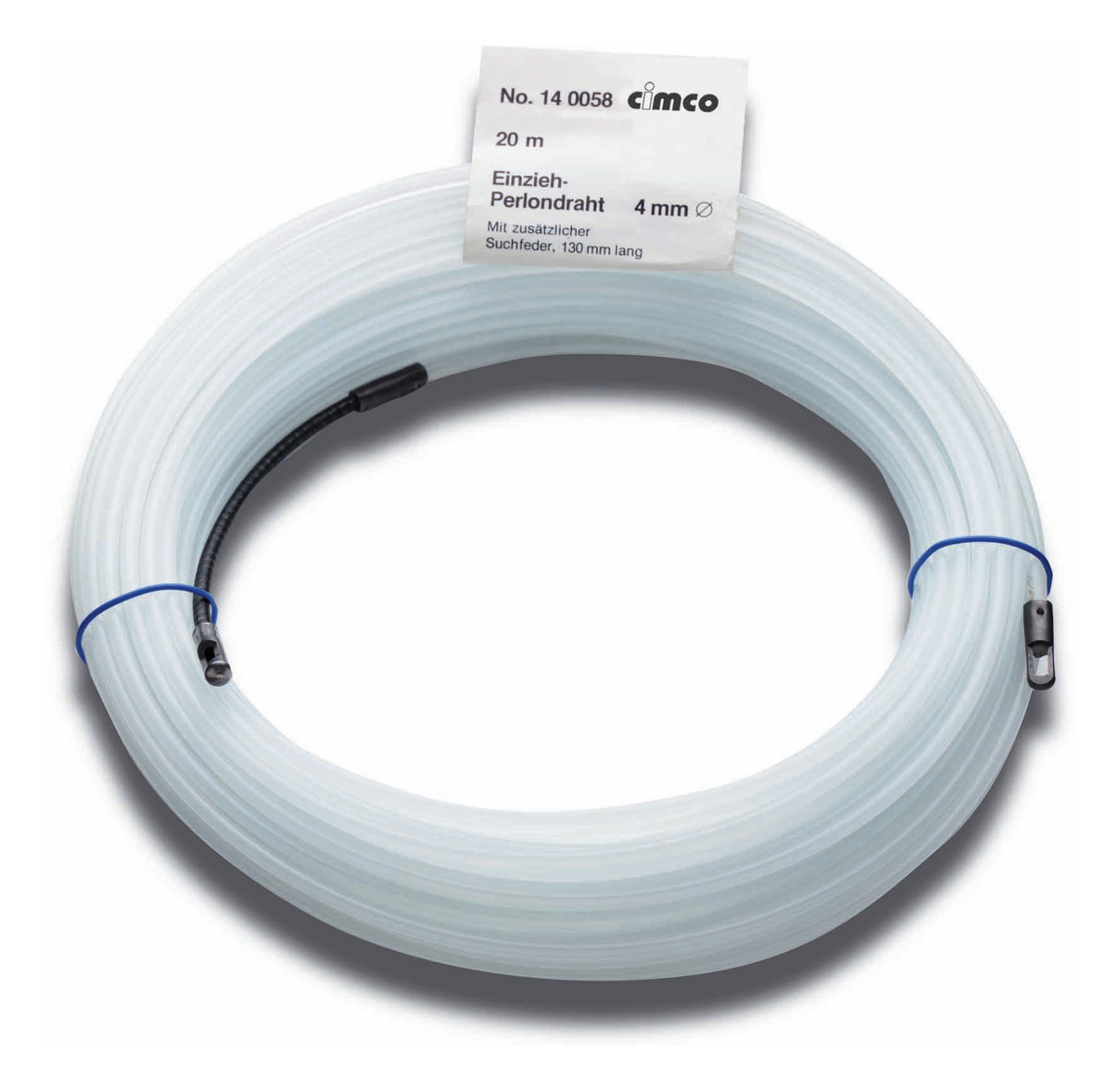Einzieh-Perlondrähte aus verstrecktem Monofil, mit massiven Stahl-Endstücken und zusätzlicher Suchfeder, ca. 130mm lang, Zugösen beidseitig, Material Durchmesser 4mm, Zugfestigkeit 900N| Hersteller / Marke | CIMCO |