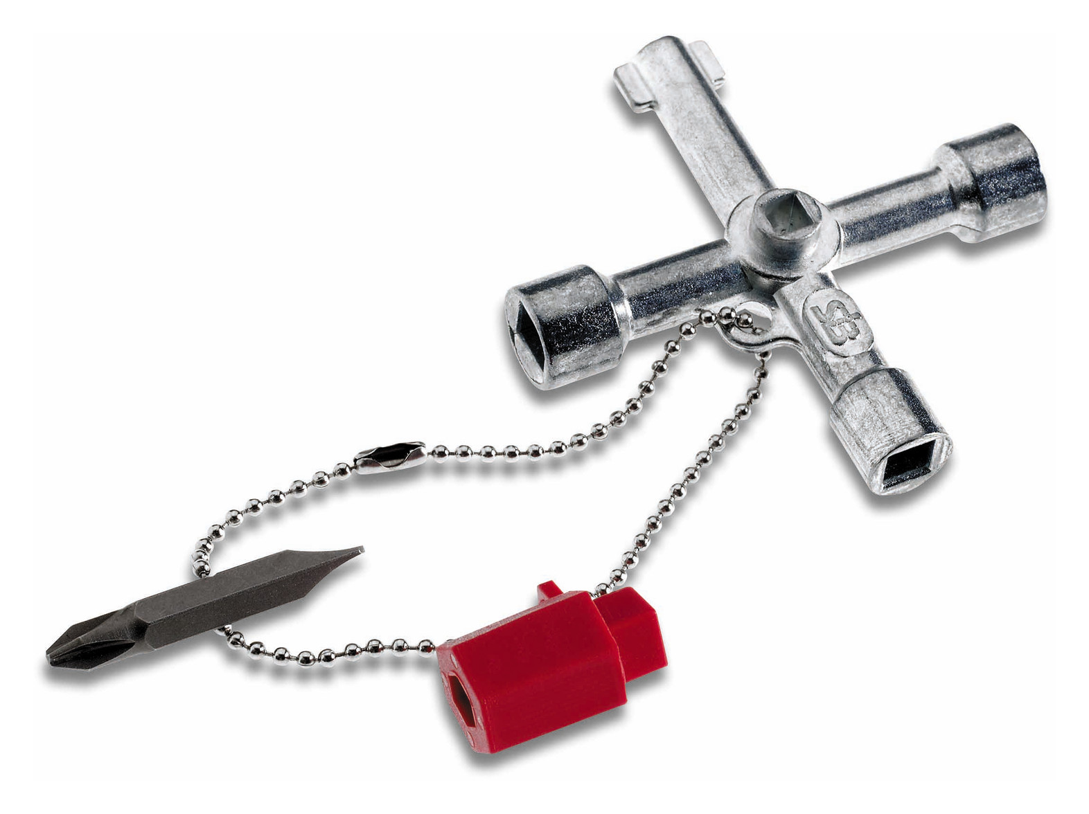 Universal-Schaltschrankschlüssel aus Metall, für alle gängigen Schaltschränke. Kleine Abmessungen, geringes Gewicht, mit Adapter für 1/4 Zoll Bits, mit Vierkantschlüssel für Heizkörper-Entlüftungsventile und Wendebit für Schlitzschrauben 1, 0x7, 0mm und/oder Kreuzschlitzschrauben PH2| Hersteller / Marke | CIMCO |