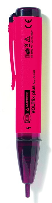 Spannungstester VOLTfix plus Berührungslose, optische und akustische Erkennung von Wechselspannungen.Gerät mit Schalter und Anzeige für Betriebsbereitschaft.Spannungsbereich 50...600 V AC| Hersteller / Marke | BEHA-AMPROBE |
