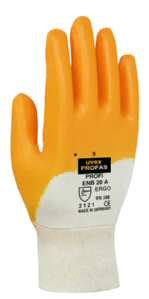 PROFI ERGO Exzellente ergonomische Passform, hochflexibel, hervorragende Abriebfestigkeit und gute Schnittsicherheit. Sehr guter Trocken-/Nassgriff. Nachweisbar hohe Trageakzeptanz, hohe Wasserdampfaufnahme des Baumwollfutters. Farbe: orange Normerfüllung : EN 388