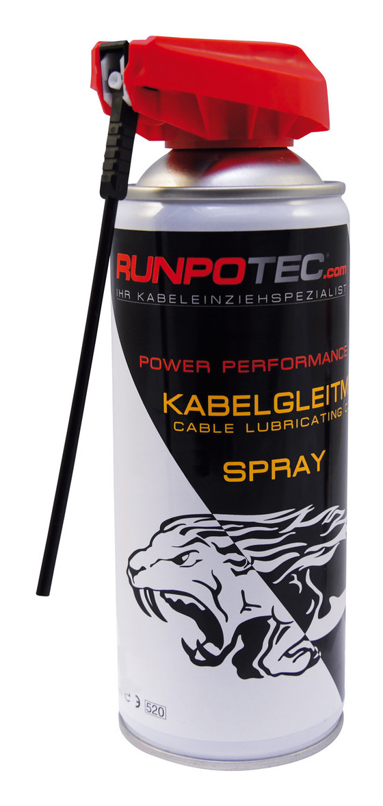 Einsatzgebiete:RUNPOTEC Kabelgleitmittel Spray erleichtert das mühelose Einziehen von Kabeln und Drähten in Elektroinstallationsrohre. RUNPOTEC Kabelgleitmittel Spray hat hervorragende, dauerhafte Schmier- und Gleitwirkung, dadurch lassen sich Kabel und Drähte mühelos einziehen. Anwendung:RUNPOTEC Kabelgleitmittel Spray auf das Kabel oder in den Kabelschacht sprühen, die enthaltenen Schmierstoffe verteilen sich gleichmäßig und erleichtern somit das sofortige Einziehen der Kabel. Mit dem Spezialaufsatz kann man zum einen großflächig Sprühen oder zum anderen mit aufgeklappten Sprühröhrchen präzise und dosiert ein- bzw. aufsprühen.Produktmerkmale: Nicht entflammbar, hervorragende Gleit- und Schmierwirkung, kein Verkleben, kein Austrocknen, farblos, geruchlos, ungiftig, nicht Ozon schädlich.Behält seine Schmier- und Gleitwirkung über viele Jahre.Flecken können mit herkömmlichen Reinigungsmittel entfernt werden.