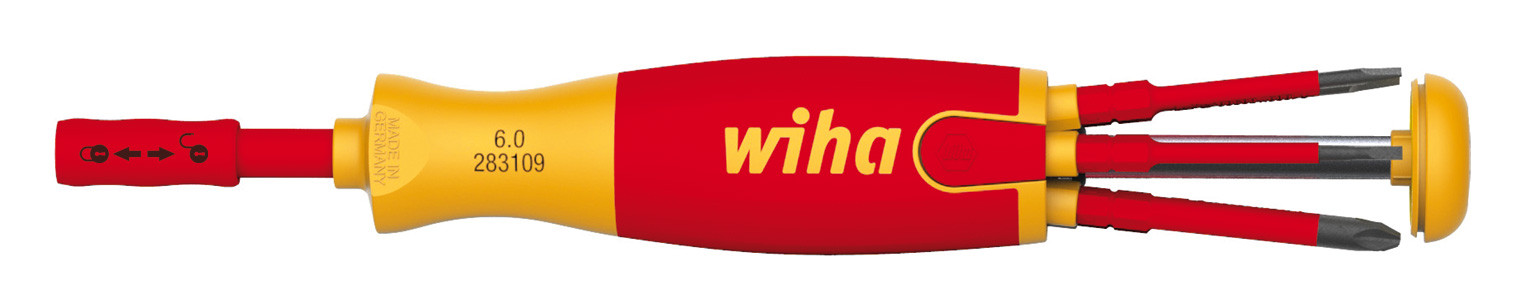 Erhöht Ihre Sicherheit: Wiha slimBits gewährleisten einen guten und geschützten Zugang zu tief liegenden Schrauben.Schont Ihre Gesundheit: Keine Verletzungsgefahr, alle Klingen sicher im Inneren des Griffs verstaut.Steigert Ihre Effizienz: Wiha LiftUp electric spart 75 % Volumen, 50 % Gewicht, für 100 % Effizienz.Bietet Ihnen vollen Schutz: Jedes Werkzeug einzeln bei 10.000 V AC getestet und zugelassen für 1.000 V AC.Der Schraubendreher mit Bit-Magazin LiftUp electric ist der ideale Begleiter für jeden Elektriker im mobilen Einsatz. Das im Griff verstaute Bitdepot bietet Platz für 6 gängige simBits und fährt per Knopfdruck aus dem Magaziner heraus. Dadurch wird eine einfache Entnahme der Bits gewährleistet. Der bewährte ClicFix Halter nimmt alle Bits sicher auf und verriegelt sie zuverlässig. Diese Technologie macht den Bitmagaziner zu einem universell einsetzbaren Schraubendreher. Auch in Puncto Sicherheit bietet der Magazin-Bithalter das maximal Mögliche. Sowohl der Magazin-Bithalter als auch die enthaltenen slimBits sind nach der internationalen Norm IEC 60900 zertifiziert. Die schlanken, 75mm langen slimBits gewähren durch die im vorderen Bereich vollständig in den Bit integrierte Schutzisolation einen perfekten Zugriff auf tiefliegende Schraub- oder Federklemmen. Ein weiterer Pluspunkt ist die drehbare Kappe, welche eine komfortable Handhabung gewährleistet. Normen: Geprüft gemäß IEC 60900.Anwendung: Geeignet zum Verschrauben im Bereich von spannungsführenden Teilen bis 1.000 V AC, insbesondere im mobilen Einsatz. 1 x Bit slimBit electric PlusMinus/Pozidriv (34590) SL/PZ2 x 75 mm1 x Bit slimBit electric Pozidriv (34585) PZ1 x 75 mm1 x Bit slimBit electric Pozidriv (34586) PZ2 x 75 mm1 x Bit slimBit electric Schlitz (34578) 2,5 mm x 75 mm1 x Bit slimBit electric Schlitz (34581) 5,5 mm x 75 mm1 x Bit slimBit electric Schlitz (41159) 3,5 mm x 75 mm