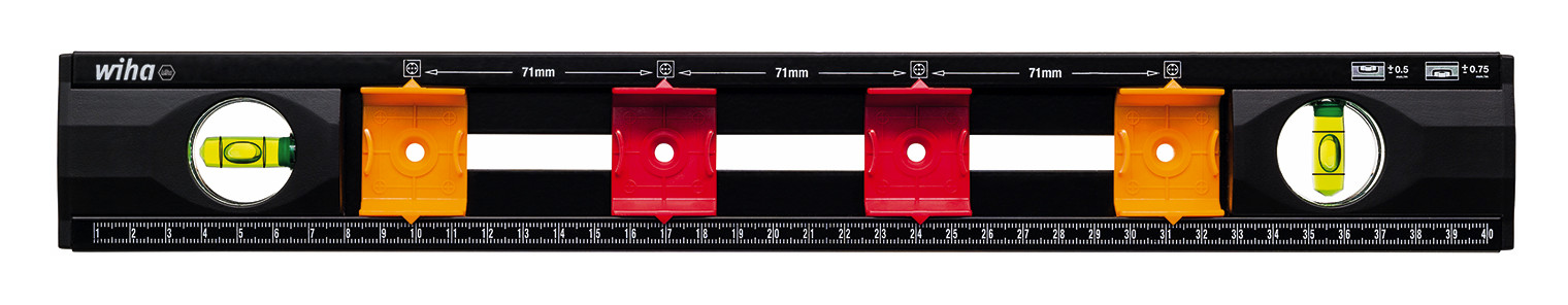 Vereinfacht Ihre Arbeit: Komfortable Bemaßung aus unterschiedlichen Arbeitspositionen dank raffiniert positionierter Skalen, sogar bei Draufsicht.Spart Platz: Perfekte Mobilität, passend für Wiha Koffer.Spart Zeit: Variable Abstandsmarkierung für bis zu 4 Unterputzdosen.Steigert Ihre Effizienz: Perfekte Einsehbarkeit beider Libellen selbst bei spitzem Blickwinkel.Gerade bei der Installation von Steckdosen am Boden hat es der Elektriker oft schwer, die Libelle auf der Wasserwaage gut einsehen zu können. Zudem entstehen beim Anzeichnen aufgrund der Libellenvertiefungen oftmals unschöne Kerben. Mit diesen Problemfällen macht die Elektriker Wasserwaage von Wiha nun Schluss. Selbst bei spitzem Blickwinkel ist eine perfekte Einsicht auf die Libellen gegeben. Zudem ermöglicht die Wasserwaage dank dem durchgehenden Gehäuse ein unterbrechungsfreies Anzeichnen von Linien. Selbst bei Draufsicht wird mithilfe der raffiniert positionierten Skalen eine komfortable Bemaßung ermöglicht. Einen weiteren Vorteil bei der Elektroinstallation bieten die variablen Abstandsmarkierungen für bis zu 4 Unterputzdosen. Dank der verschiebbaren Markierpunkte für Dosen kann die Wasserwaage je nach Ländervorgabe an die jeweiligen Markierungsabstände angepasst und somit auch vielfältig und international eingesetzt werden. Dank ihrer kompakten Form ist die Wasserwaage zudem perfekt für den mobilen Einsatz geeignet und kann bequem im Wiha Elektrikerkoffer verstaut werden.Anwendung: Zum horizontalen und vertikalen Messen und Markieren der Abstände von Unterputzdosen.