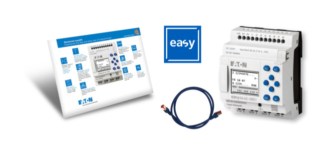 Starterpaket zum leichten Einstieg in die Steuerungstechnik. Das Starterpaket enthält das Steuerrelais EASY-E4-UC-12RC1 mit LCD-Display und Anschlüsse per Schraubklemme, eine Patch-Leitung zum Anschluss des Steuerrelais an die Ethernet-Schnittstelle und eine Lizenz für die Bedien- und Programmiersoftware easySoft.| Hersteller / Marke | EATON |