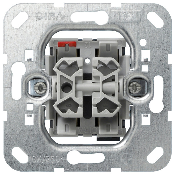 Einsatz Wipp-Jalousietaster 10 A 250 V~Merkmale: Mit Sperre gegen doppelseitiges Einschalten. Elektrisch und mechanisch verriegelt.Hinweise : Als Nebenstelle passend für Einsatz Jalousiesteuerung mit Nebenstelleneingang.