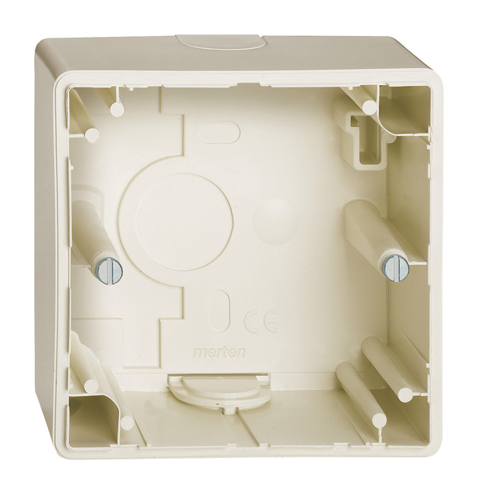 Mit geschlossenem Boden und Führungsnuten für Trennwände. 2 vorgeformte Leitungseingänge, verschlossen mit Blindschiebern. Auf jeden Baustoff montierbar. Zubehör: Kanaleinführung (15 mm) AUFPUTZ 5350xx Lieferumfang: Mit Geräte-Befestigungsschrauben und Leitungseinführung. Farbe: weiß.| Hersteller / Marke | MERTEN |