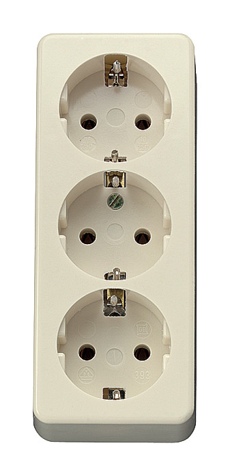 Steckdose, 3fach, Aufputz, 16 A, 250 V ~, mit Bodenplatte, ohne Zugentlastung| Hersteller / Marke | JUNG |