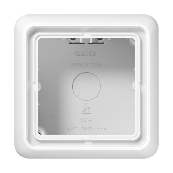 Aufputz-Kappe, 1fach, mit integrierter, flammwidriger Bodenplatte und angeformtem Rahmen, zum Einbau von Unterputz-Geräten mit ST-550-Zentralplatten und CD-500-Abdeckungen| Hersteller / Marke | JUNG |