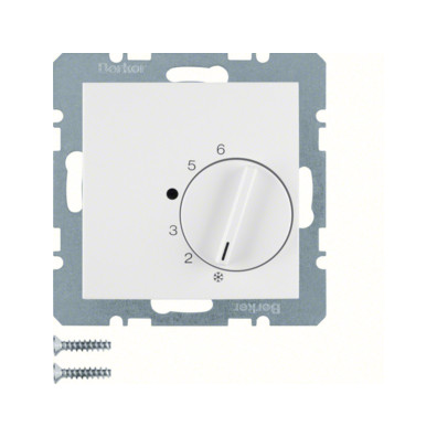 Temperaturregler mit Wechsler und Zentralstück S.1/B.3/B.7 polarweiß, matt. Raumtemperaturregler mit Wechsler und Zentralstück, mit Aufdruck, Regulierknopf mit Temperaturbereichsbegrenzung. Für Heiz- oder Kühlbetrieb, z.B. für Stellantriebe stromlos geschlossen, mit thermischer Rückführung, ohne Spreizkrallen, mit Steckklemmen, Neutralleiter erforderlich, wird die eingestellte Temperatur erreicht, wechselt der Kontakt. Unterputz-Installation, Standard-/Flächen-/Designprogramm. Material: Kunststoff, Thermoplast, bruchsicher, halogenfrei. Temperaturregler mit Wechsler und Zentralstück S.1/B.3/B.7 polarweiß, matt. Raumtemperaturregler mit Wechsler und Zentralstück, mit Aufdruck, Regulierknopf mit Temperaturbereichsbegrenzung. Für Heiz- oder Kühlbetrieb, z.B. für Stellantriebe stromlos geschlossen, mit thermischer Rückführung, ohne Spreizkrallen, mit Steckklemmen, Neutralleiter erforderlich, wird die eingestellte Temperatur erreicht, wechselt der Kontakt. Unterputz-Installation, Standard-/Flächen-/Designprogramm. Material: Kunststoff, Thermoplast, bruchsicher, halogenfrei.