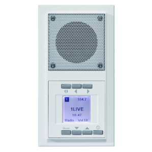 Unterputz-Radio im AURA-Design zum Einbau in 2 Unterputzdosen (nicht kombinationsfähig), mit drehbarem Displayeinsatz für senkrechte und waagerechte Montage, RDS-Radio, 5 Sender speicherbar, mit beleuchtetem Display, Helligkeit im EIN- und AUS-Zustand getrennt einstellbar. Zeitanzeige, Weckfunktion, Sleep-Funktion (automatisches Ausschalten). Anschluss: 230 V AC, Menüsprache wählbar (D, NL, GB, F).