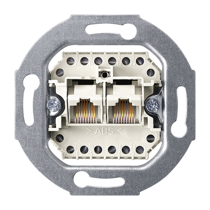 Zum Anschluss von analogen oder digitalen Endgeräten über zwei 8-polige UAE-Buchsen. Mit Schraubklemmen. Zu komplettieren mit: Zentralplatte für UAE-Einsatz, 2fach System M 2961xx, 2980xx, System Design MEG4522-60xx, System Fläche 2926xx Farbe: weiß.