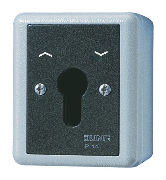 Schlüsselschalter, 10 AX, 250 V ~, mit Alu-Druckguss-Gehäuse, Jalousie-Wendeschalter 2-polig, für Profil-Halbzylinder mit ca. 40 mm Gesamtlänge (DIN 18252)