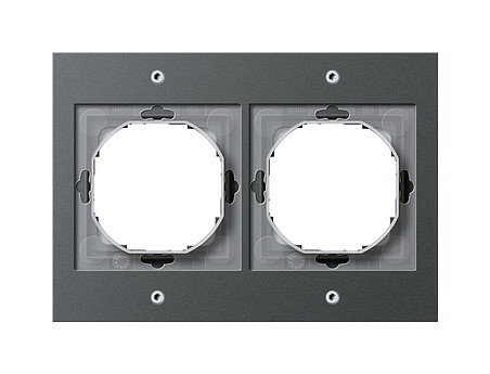 Abdeckrahmen Gira TX_44 Anthrazit 2fach Merkmale: - Bruchsicher. Hinweise : - Abdeckrahmen montagefreundlich ohne Werkzeug, Demontage mit Torx-Schraubendreher T9 oder T10. - Dübelbefestigung möglich. - Zentraleinsätze demontagegeschützt.