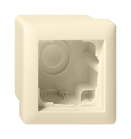 Aufputz-Gehäuse, komplett mit Abdeckrahmen Standard 55, 1fach Cremeweiß glänzend Merkmale: - Mit Leitungs- und Kanaleinführung. Hinweise : - Wippschalter, Taster und SCHUKO-Steckdosen mit Klappdeckel sind bei Standard 55 auf der Wand in Verbindung mit diesen Gehäusen generell tropfwassergeschützt (IP21). - Schlüsselschalter und 3-Stufenschalter können nicht in diese Gehäuse eingebaut werden.