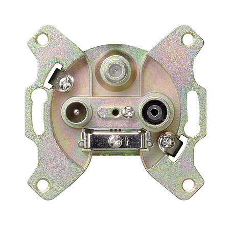 Einsatz Antennensteckdose (FS 302 F) Merkmale: - Mit drei Anschlüssen als Enddose verwendbar. - Einsatz in Einzelantennenanlagen, hinter einem Multischalter oder an einer entkoppelten Stichleitung. - Der Anschluss für den Satelliten-Receiver ist als F-Buchse ausgeführt. Über diesen ist auch die Gleichspannungsübertragung (max. DC 24 V 500 mA) zu einer Satellitenantenne möglich. Hinweise : - Nur für Schraubbefestigung. - Achtung! Bauraum für Stecker und Biegeradien beachten. - Bei Einsätzen mit Kupplungen beachten: Nicht für Kanalinstallation und Standard-Gerätedose geeignet. Anschluss mit Winkelsteckern empfohlen. - Installationsempfehlung: Kaiser Elektronic-Dosen Unterputz-Montage: Kaiser Best.-Nr.: 1068-02 Hohlwandmontage: Kaiser Best.-Nr.: 9062-94 Betoninstallation: Kaiser Best.-Nr.: 1268-40| Hersteller / Marke | GIRA |