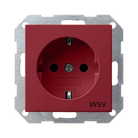SCHUKO-Steckdose 16 A 250 V~ mit roter Abdeckung und Aufdruck "WSV" (weitere Sicherheitsversorgung) Rot glänzend Merkmale: - Die Sockel der SCHUKO-Steckdosen sind farblich entsprechend gekennzeichnet.| Hersteller / Marke | GIRA |