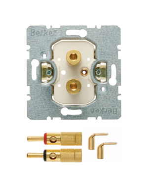 Lautsprecher-Steckdose High End Modul-Einsätze. Lautsprecher-Steckdose High End, mit 2 Bananen- Steckbuchsen Metall (vergoldete Ausführung), mit 2 Bananen-Steckern Metall (vergoldete Ausführung), mit 2 Kabelschuhen Metall (vergoldete Ausführung). Bananen-Steckbuchsen auch für Schraubanschluss geeignet. Buchse und Stecker mit Kennring rot bzw. schwarz, auch als Steckverbindung für Schutz-Kleinspannung geeignet. Lautsprecher-Steckdose High End Modul-Einsätze. Lautsprecher-Steckdose High End, mit 2 Bananen- Steckbuchsen Metall (vergoldete Ausführung), mit 2 Bananen-Steckern Metall (vergoldete Ausführung), mit 2 Kabelschuhen Metall (vergoldete Ausführung). Bananen-Steckbuchsen auch für Schraubanschluss geeignet. Buchse und Stecker mit Kennring rot bzw. schwarz, auch als Steckverbindung für Schutz-Kleinspannung geeignet.| Hersteller / Marke | BERKER |