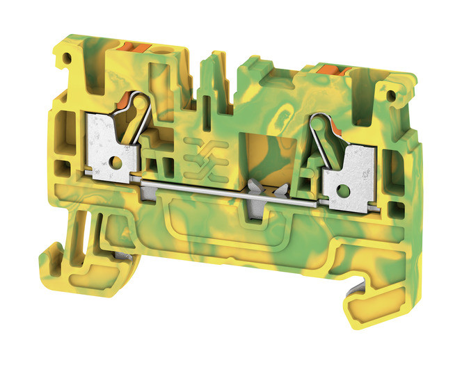 Klemme mit Schutzleiterkontakt zum Anschluss oder der Verbindung von Drähten, Adern und Leitungen mit dauerhaft sicherem Kontakt. Gehärteter Stahl für die mechanischen Kräfte und hochwertiges Kupfer mit Zinn-Beschichtung sorgen für beste Leitfähigkeit.