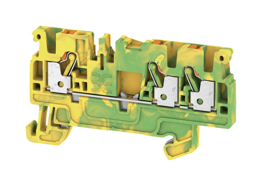 Klemme mit Schutzleiterkontakt zum Anschluss oder der Verbindung von Drähten, Adern und Leitungen mit dauerhaft sicherem Kontakt. Gehärteter Stahl für die mechanischen Kräfte und hochwertiges Kupfer mit Zinn-Beschichtung sorgen für beste Leitfähigkeit.