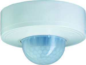 Bewegungsmelder Elektronischer Bewegungsmelder für die Deckenmontage im Außenbereich. 360° Flächenüberwachung  von 30 x 20 m, Helligkeit und Zeit von Außen einstellbar, integrierte Funktionsanzeige, AC 230 V, ± 10 %, 50 Hz, 0-2300 VA, Halogenlampen  AC 230 V, max. 2000 W, Schutzart IP 55. Bewegungsmelder für die Deckenmontage im Außenbereich. 360 Grad-Flächenüberwachung auf einer Länge von 30 m und einer Breite von 20 m. -Bedienelemente zur Einstellung der Helligkeitsschwelle und Zeit. -LED-Funktionsanzeige zur schnellen Ausrichtung am Montageort. Netzspannung: AC 230 V +/-10 %, 50 Hz. Glühlampen: max. 3000 W. Halogenlampen: AC 230 V, max. 2500 W. Kapazitive Last: max. 140 uF. Max. Schaltstrom: 16 A, AC 230 V, cos Phi = 0,6. Eigenverbrauch: Kondensator 542895. Lieferumfang: Mit Schrauben und Dübel. Farbe: polarweiß.