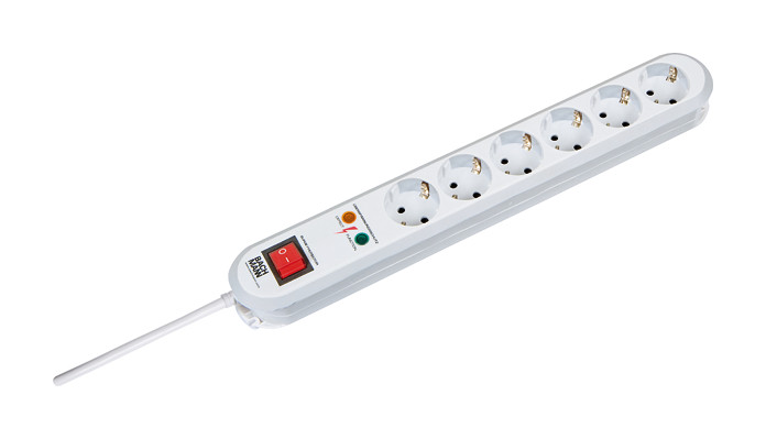 Tischsteckdose SMART 6fach weiß, mit ÜBERSPANNUNGSSCHUTZ mit Schalter, mit erhöhtem Berührungsschutz, nicht öffenbar 1,5m H05VV-F 3G1,5mm² Schutzkontaktstecker, im Polybeutel mit Header| Hersteller / Marke | BACHMANN |