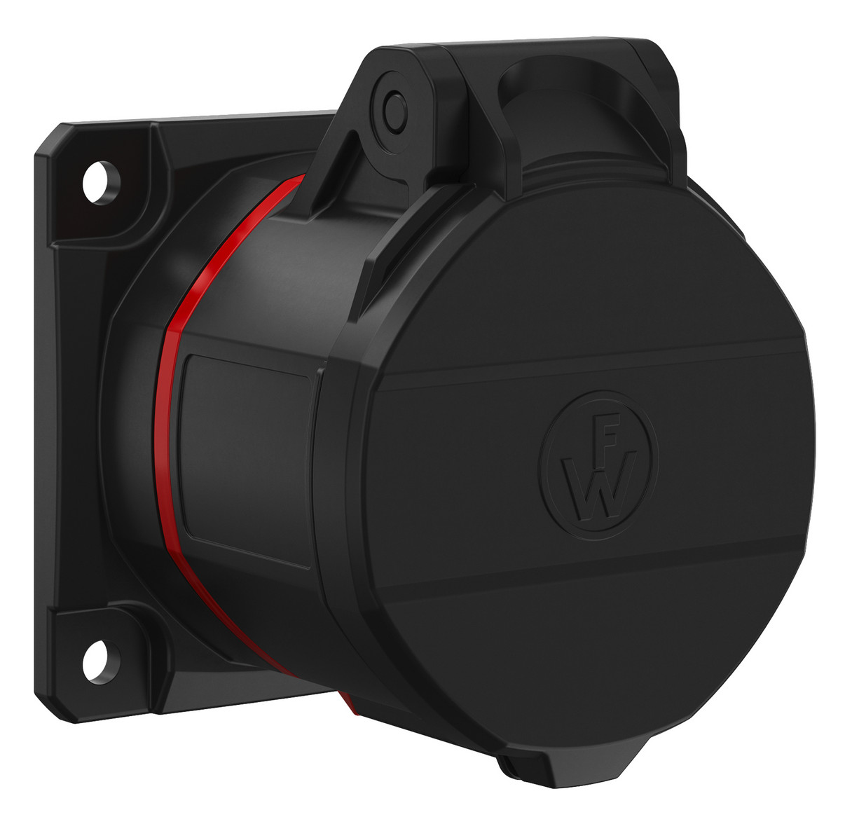 WALTHER CEE NEO Anbaudose gerade mit Schraubtechnik 16A 5P 6h IP54 200/346V - 240/415V ~ mit Farbringcodierung "rot" Gehäuse aus PA6-Material mit hoch wärmebeständigem Kontaktträger aus PA66-Material handrückensicher nach BGV A3 Flanschmaß 75x75mm Befestigungsmaß 60x60mm