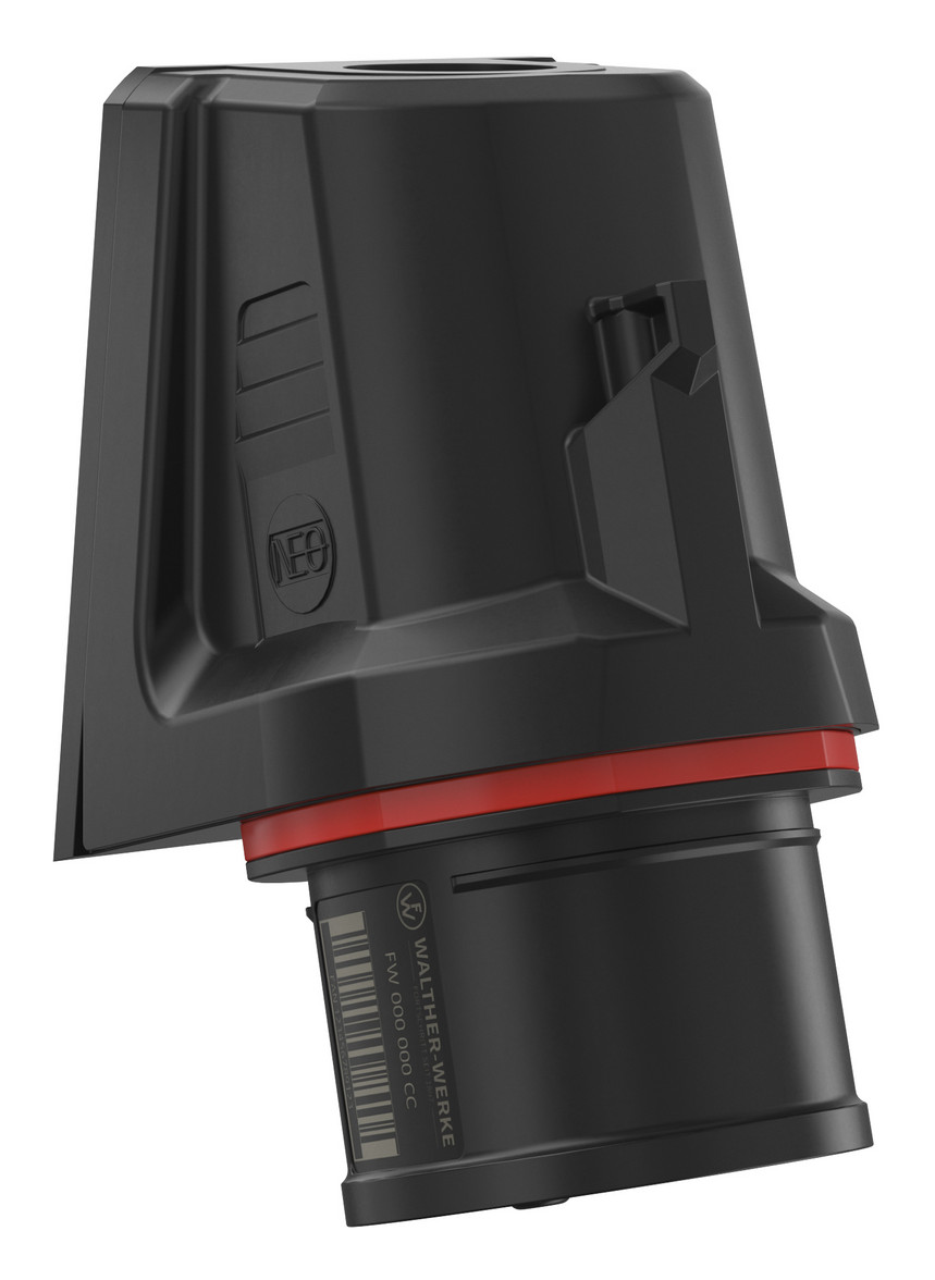 WALTHER CEE NEO Wandgerätestecker schräg mit Schraubtechnik 16A 5P 6h IP54 200/346V - 240/415V ~ mit Farbringcodierung "rot" Gehäuse aus PA6-Material mit hoch wärmebeständigem Kontaktträger aus PA66-Material mit einer Kabeleinführung M25 oben zur Innenbefestigung