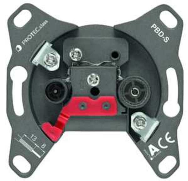 Hyperbreitbanddosen für BK Hochflexibler, wegklappbarer Anschlussdeckel Rückkanaltauglich 5...30 MHz/5...65 MHz Oberflächenveredelt In alle gängigen Schalterprogramme integrierbar Kein Gleichspannungsdurchlass Entspricht der EN 50083 - 2/A1, Klasse A PBD-D: Durchgangsdämpfung max. 2,3 dB| Hersteller / Marke | PROTEC.CLASS |